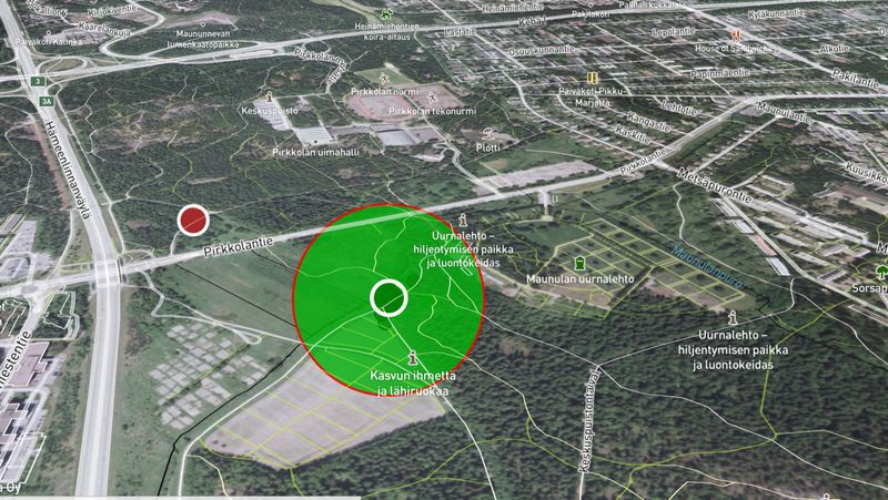 Visitors experienced the archive on-site, by walking in the forest. Through the walk, the audience/participants explored the hybridised physical+digital space through stories, interviews, and ambient soundscapes presented as audio files, as well as photographs and archive documents. Through the website’s “exploration mode” they found the mapped elements by following the increasing volume of the sounds as they grew nearer and other directions provided by the interface. With aerial photos from previous decades, the map interface also makes visible the geographical changes to the Park, the Maunula area, and its surroundings.