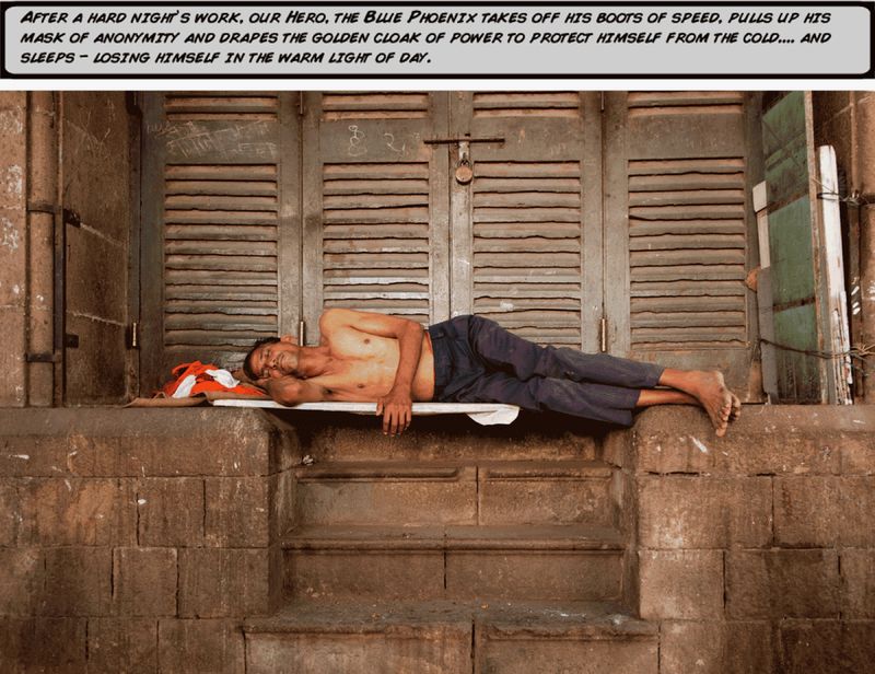 I love the idea of superheroes as a contemporary myth. The pictures are of the working class, beggars and street urchins. I think of them as heroes because of their struggle for survival. It is a way of looking at their lives as heroic, a lionisation of these people. There is a certain amount of nobility in what they do. But there is a duality to this. They don’t really want to be lionised though or recognised as anything special. Conceptually, the work is also about fiction and reality and blurring the lines between the two.